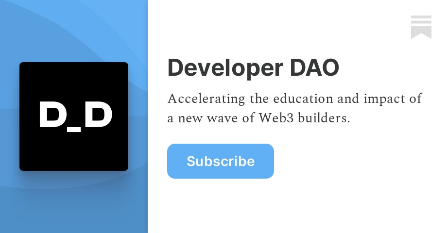 Accelerating the education and impact of a new wave of Web3 builders. Click to read Developer DAO, a Substack publication with thousands of subscribers.